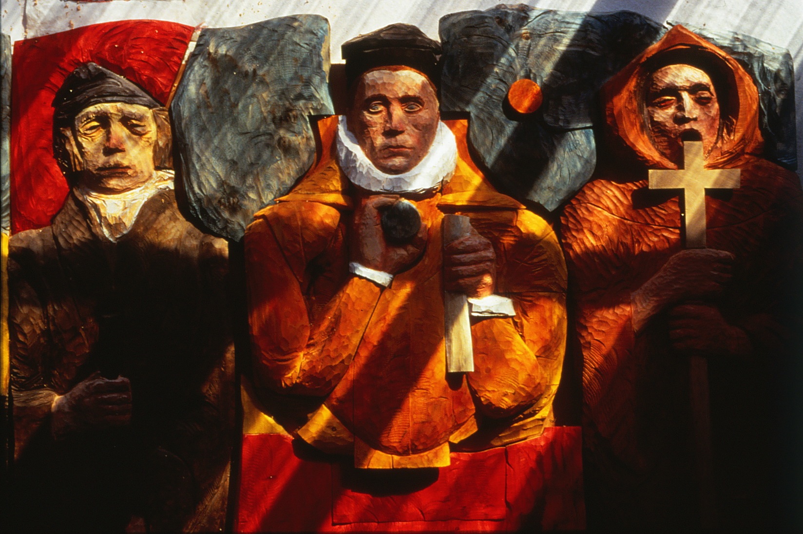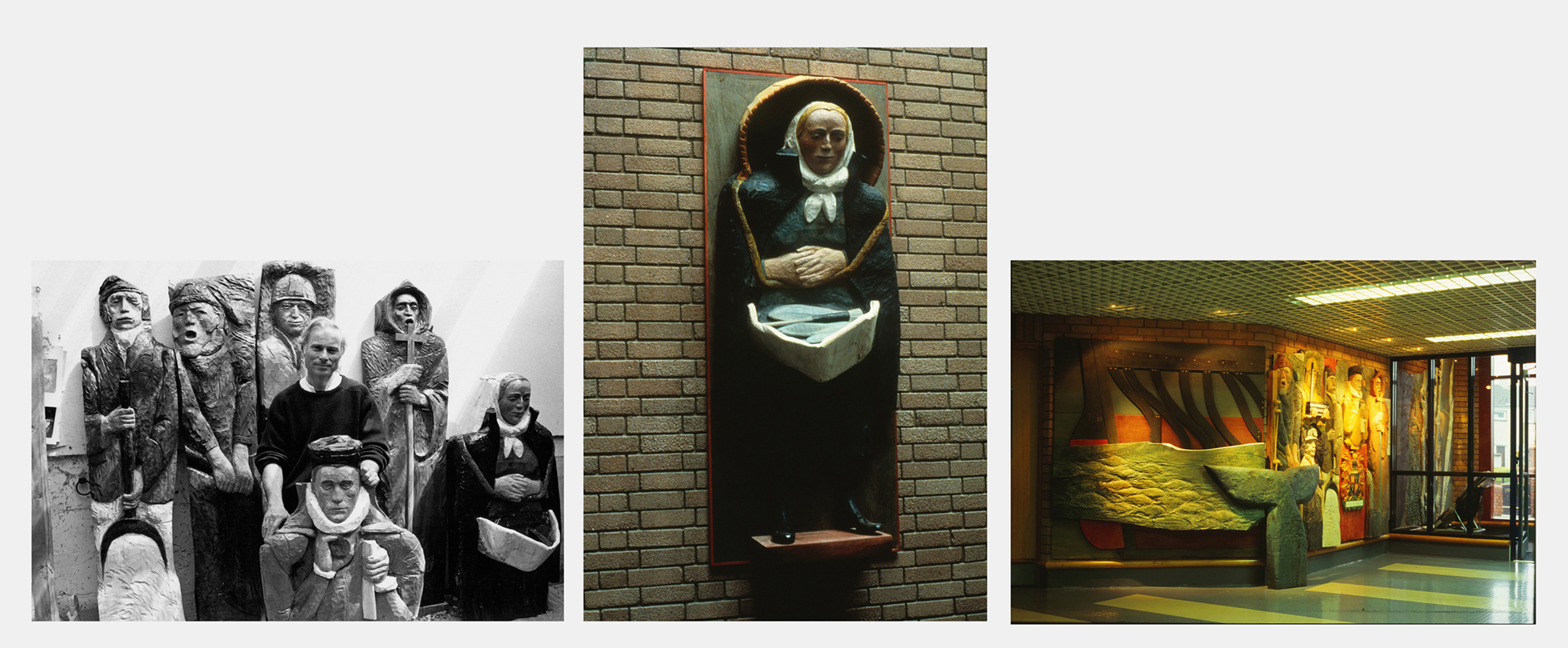 Mural at Cockenzie and Port Seton Community Centre, East Lothian. Carved and polychromed limewood. Client East Lothian Council