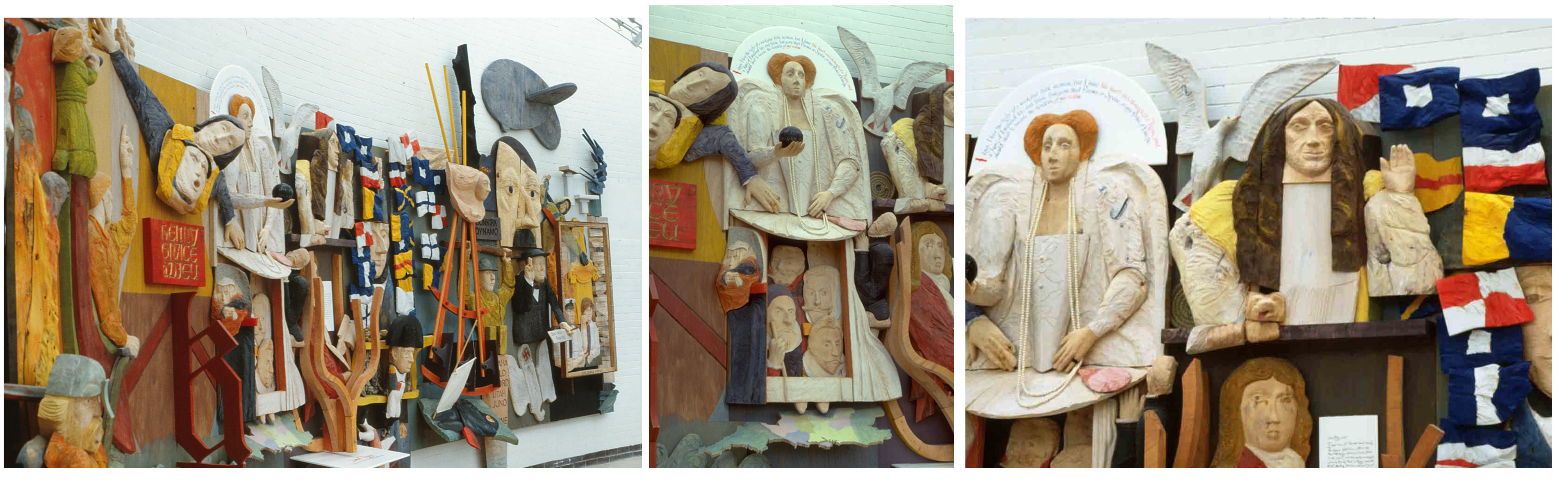Mural at White Cliffs Experience, Dover. Carved and polychromed limewood. Client:Dover City Council