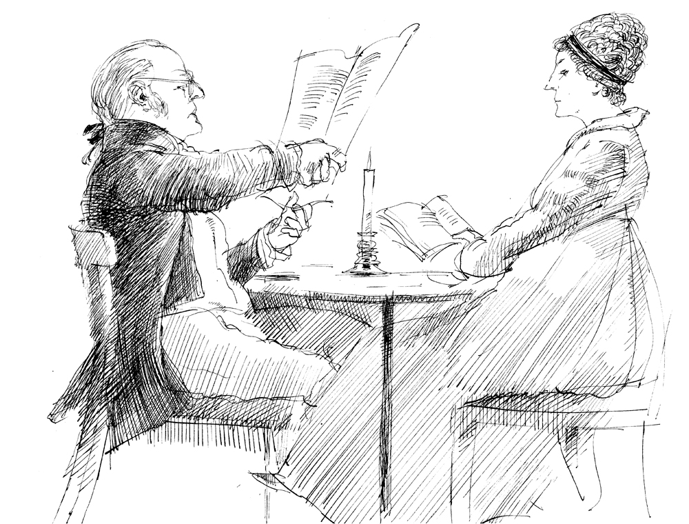 I find pen and ink a wonderfully expressive medium. It took a long time to master and to find the balance of materials that suited me. I draw directly on to the paper without any preparatory pencil drawing so there must be nothing to impede the flow of the nib which in my case is extremely fine and likely to catch on the slightest hair or bump. Sometimes such accidents can give a liberated character to an otherwise tight drawing but mostly they elicit a curse from the draughtsman.