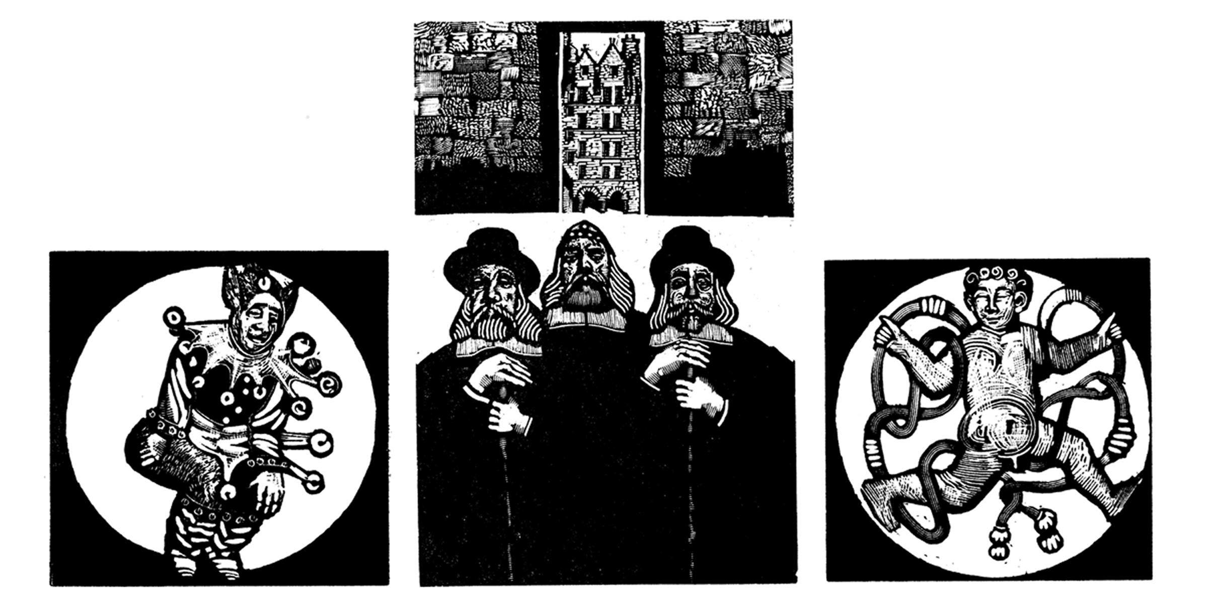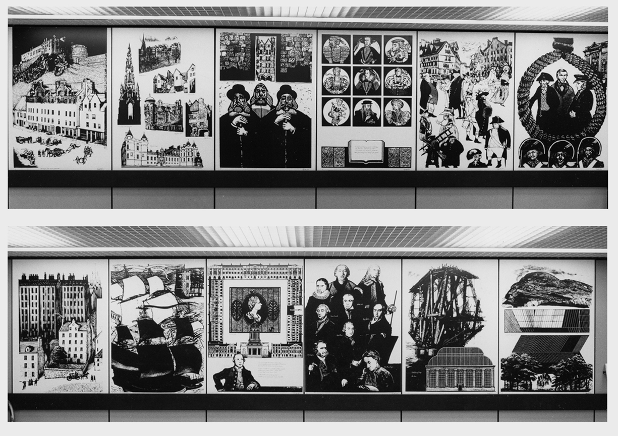 Mural at Savacentre, Cameron Toll, Edinburgh. Wood-engravings, enlarged and laminated.