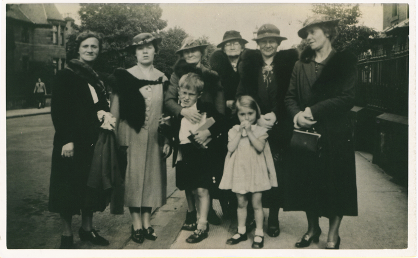 One of my favourites was this group taken when my mother, second from the left, was young and untroubled. She is accompanied by her mother and three aunts. There are several generations present including my great, great grandmother born in 1861!
